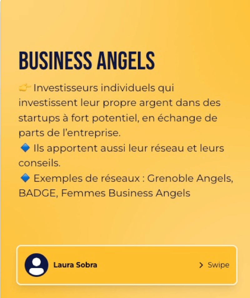 ๐น Ils peuvent รชtre regroupรฉs en rรฉseaux comme Grenoble Angels, BADGE (Business Angels des Grandes Ecoles), Femmes Business Angels, etc.